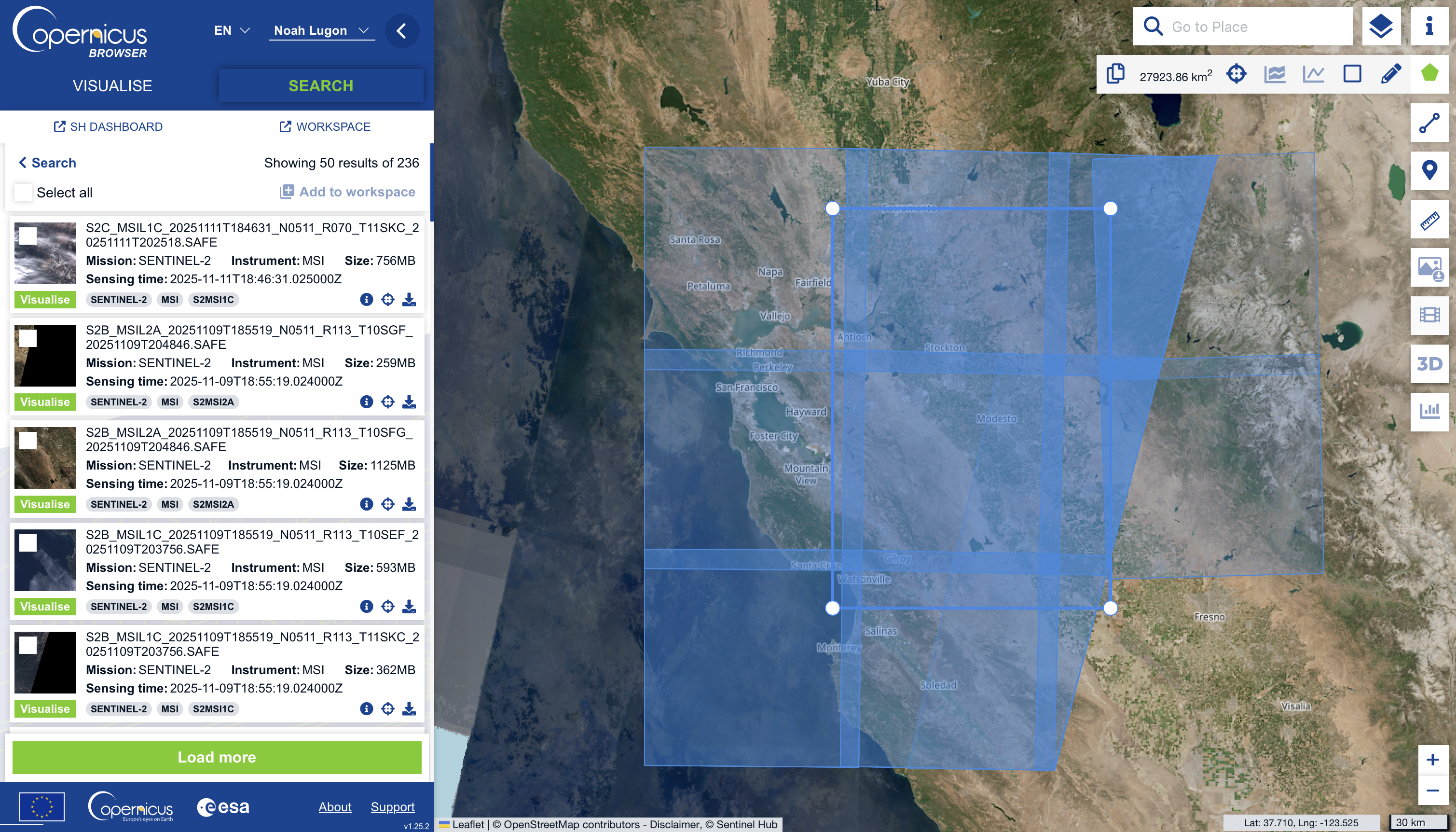 Download satellite imagery through the Copernicus browser.