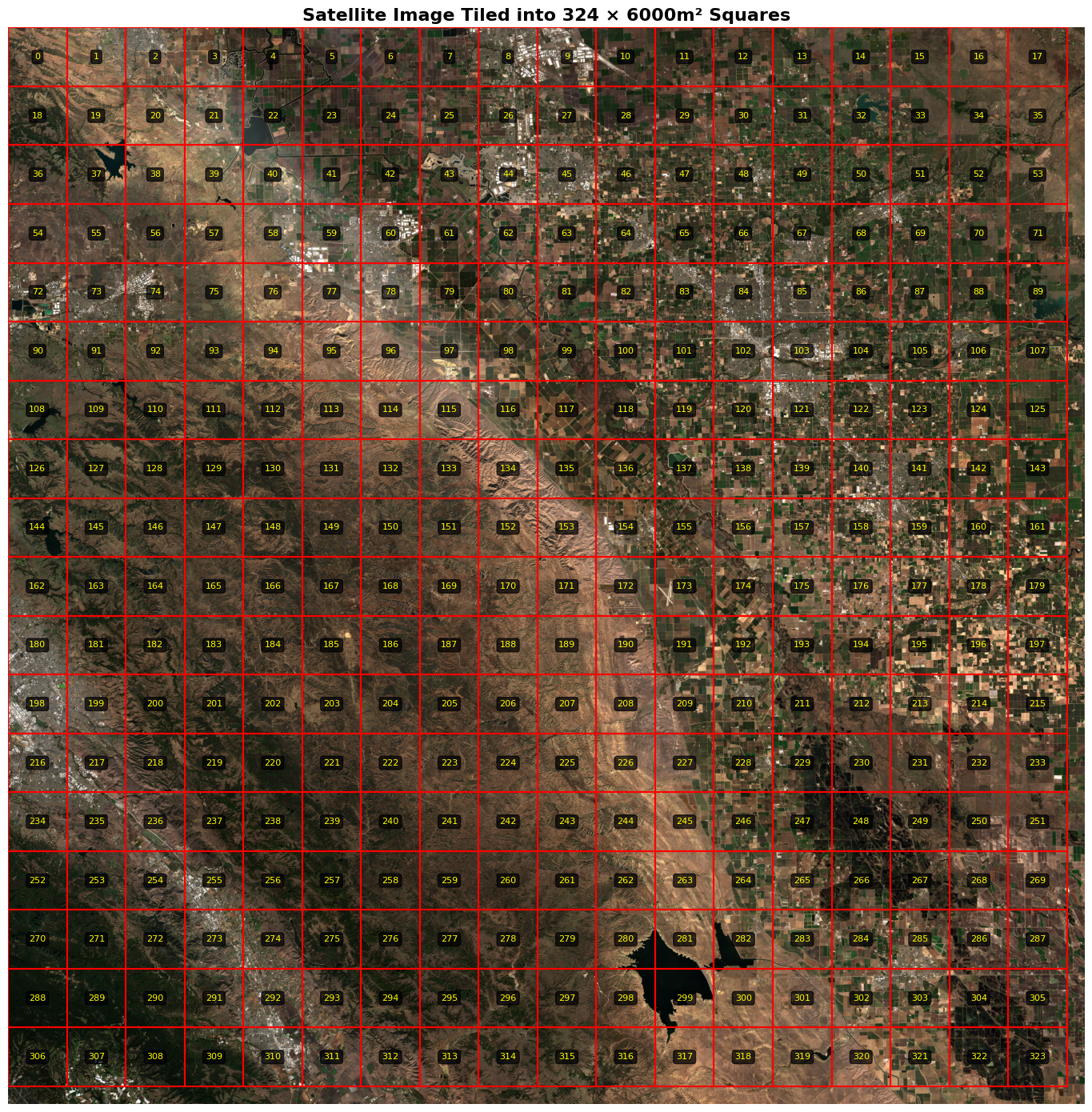 Idea: assuming we approximately know the size (in meters) of the area covered by the field of view of the onboard camera, divide the Sentinel-2 satellite data into small tiles, for each of which we’ll run template matching with the aerial image.